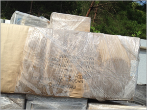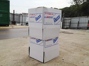 ダンボールを巻きつけて梱包 |